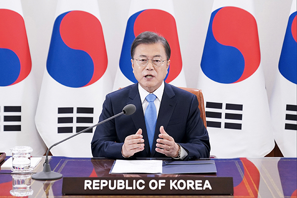 [일간환경연합 장영기 기자]문재인 대통령은 18일 코로나19 백신과 치료제에 대해 “인류를 위한 공공재로서 전 세계에 공평하게 보급되어야 할 것”이라고 말했다.