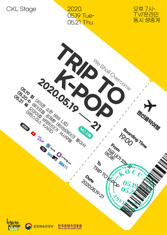 문체부는 한국콘텐츠진흥원과 함께 오는 19일부터 21일까지 콘텐츠코리아랩 스테이지에서 매일 저녁 7시 ‘랜선음악여행–트립 투 케이팝(TRIP TO K-POP)’을 무관중으로 개최한다.