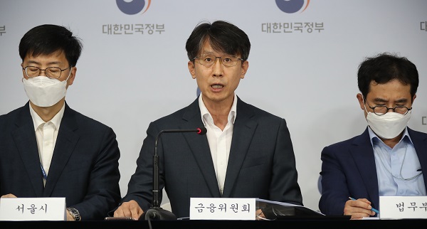 이명순 금융위원회 금융소비자국장(가운데)이 23일 정부서울청사 브리핑실에서 관계부처와 합동으로 불법사금융 근절방안을 발표하고 있다. (사진=(c) 연합뉴스)관계부처는 29일부터 연말까지 불법사금융 특별근절 기간으로 선포하고 대대적인 불법사금융 단속, 처벌에 나서기로 했다.