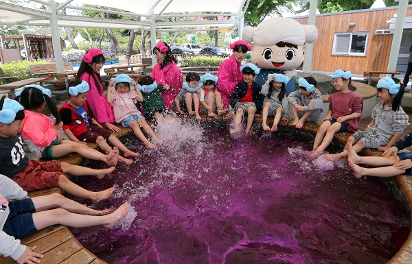 유성온천문화축제 개막을 하루 앞둔 지난해 5월 9일 대전 유성구 야외족욕장에서 어린이들이 물장구를 치고 있다.(사진=(c) 연합뉴스)문화체육관광부는 ‘2020년도 온천지구 관광거점 조성’ 사업 공모를 통해 ‘대전 유성온천’을 지원 대상으로 선정하고 4년간(2020~2023년) 국비 90억 원 이내 범위에서 예산을 지원한다.