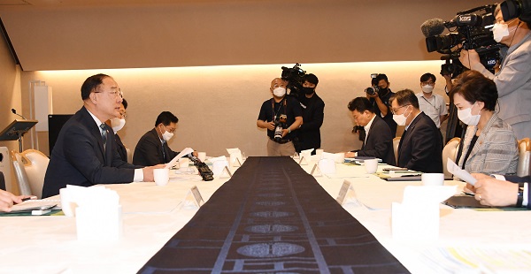홍 부총리는 부동산 입법 및 공급대책 후속 진행상황에 대해 “수요관리 측면에서 부동산 입법 관련 하위법령의 조속한 개정을 추진하고 공급확대 측면에서 공공기관 이전 필요부지의 매입 등에 대한 기관간 협의 신속 추진, 태릉 등 광역교통망 계획 수립과 도시정비법 등 재건축 확대를 위한 법령 정비에 박차를 가하겠다”고 밝혔다.