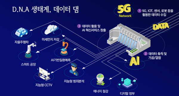 데이터 댐은 사회 곳곳에 흩어진 공공·민간 데이터를 모두가 이용할 수 있도록 하나의 형태로 가공하고, 이렇게 구축된 빅데이터를 분석·활용할 수 있는 시스템과 5세대(5G) 통신망을 갖추는 것이 핵심 골자다. 현재는 데이터 수집 초기단계로, 5G와 AI 융합에 미흡한 상황이다.