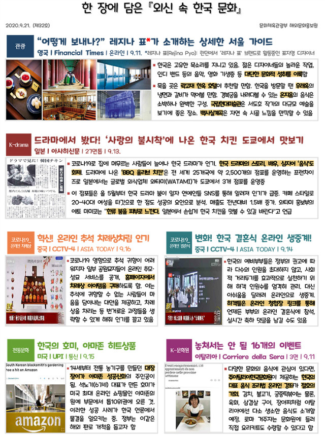 문화체육관광부 해외문화홍보원이 매주 월요일 발행하는 <한 장에 담은 외신 속 한국 문화> 32호를 소개합니다.