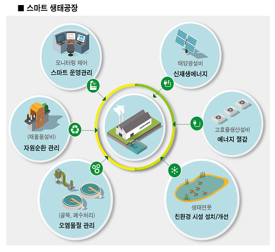 환경부는 ‘스마트 생태공장 구축사업’을 통해 제조공장이 오염물질과 탄소 배출을 줄이고 깨끗한 녹색기업으로 전환될 수 있도록 지속적으로 지원할 계획이다.