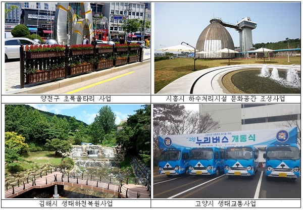 이 밖에 경기 고양시는 생태교통사업 도입, 경남 김해시는 100만 그루 나무심기, 충남 서천군은 장항제련소 주변 토양오염 정화사업, 충남 홍성군은 에너지 효율형 스마트팜 축사 사업의 우수성을 각각 인정받아 환경부 장관상을 수상했다.