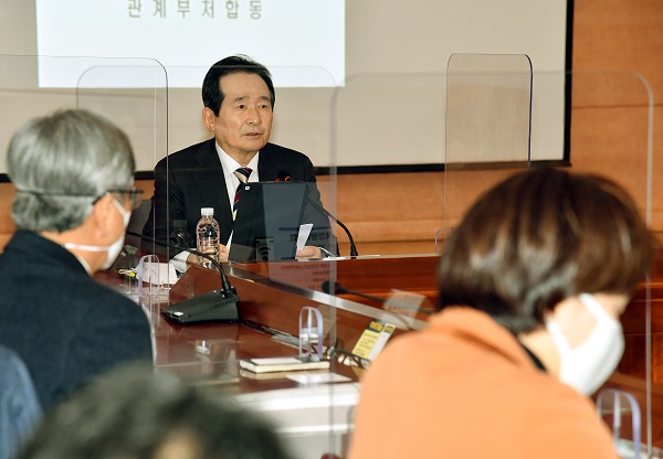 정세균 국무총리가 14일 정부서울청사에서 열린 ‘녹색성장위원회’를 주재하며 발언하고 있다.