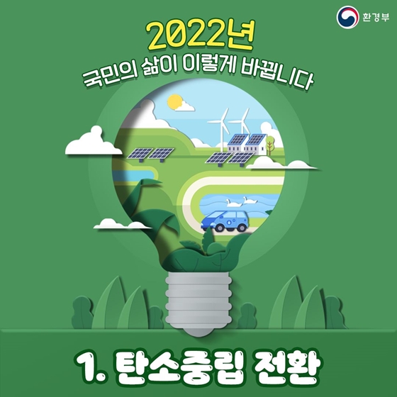 [일간환경연합 장민주 기자]다음은 올해부터 달라지는 환경부의 환경정책입니다. 2022년 환경부는 국민이 체감하는 탄소중립 전환을 위해 최선을 다하겠습니다.