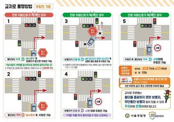 [일간환경연합 한선미 기자]교차로에서 차량 신호등이 적색일 때 우회전 하는 경우 운전자의 정지의무가 명확해진다.