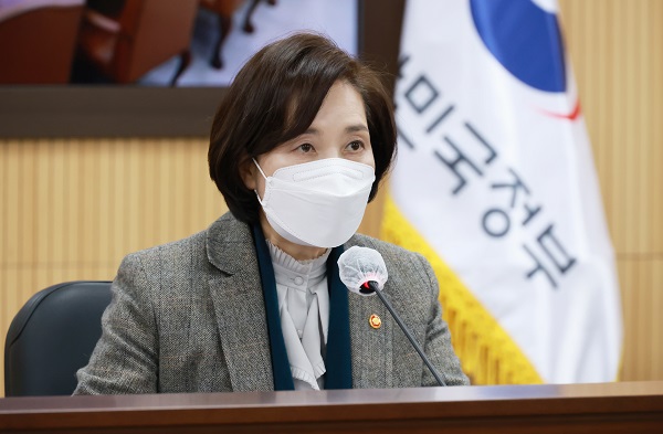 ▲ 유은혜 사회부총리 겸 교육부장관이 9일 정부세종청사에서 열린 제3차 사회관계장관회의에서 모두발언을 하고 있다. (사진=교육부)◆ 디지털 시대 지역발전 위한 사회정책 추진방안