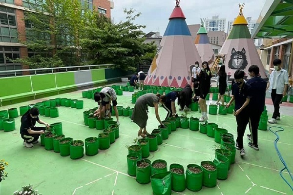 ▲ 지난해 탄소중립 중점학교로 선정된 경기 송내고등학교 학생들이 식물심기 활동에 나서고 있다. (사진=송내고등학교)올해 ‘탄소중립 중점학교 지원 사업’에는 전국 92개교가 신청하는 등 미래세대의 탄소중립 실천과 기후·환경교육에 대한 많은 관심을 보인 것으로 나타났다.