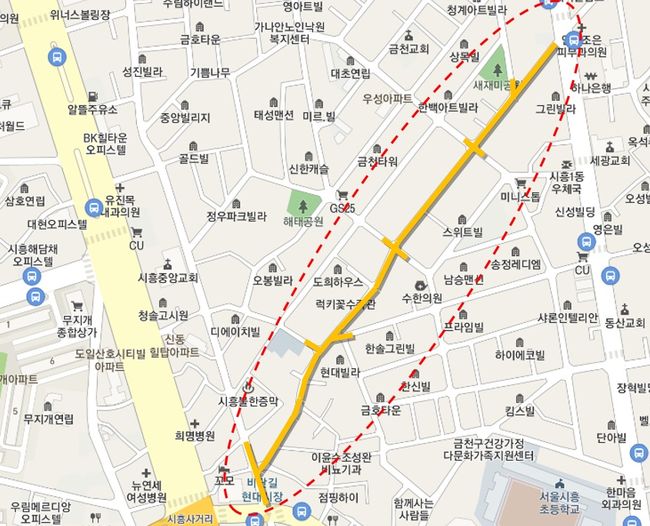 금천구, 현대시장 통행로 보행환경 개선 공사 실시 (위치도)