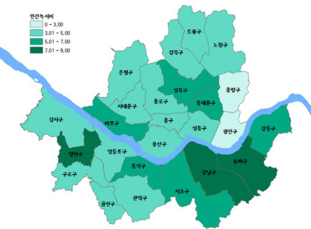 조경수목식재지 증가는 항동푸른수목원(구로구), 중랑캠핑숲(중랑구) 등 대형공원 조성, 소공원 등 다양한 녹지조성사업을 꾸준히 실시한 결과로 분석된다.