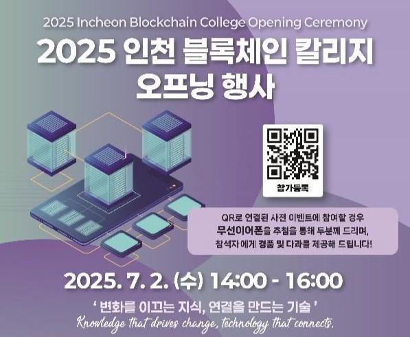 [일간환경연합 김경훈 기자] 인천광역시(시장 유정복)는 7월 2일 국립 인천대학교 학산도서관에서 지역 블록체인 인재 양성과 기술역량 강화를 위한 `2025 인천 블록체인 칼리지` 오프닝 행사를 성황리에 개최했다고 밝혔다.