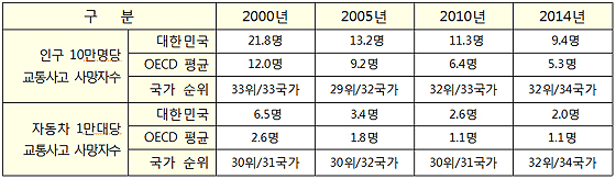 OECD 회원국과 우리나라의 교통안전수준 비교(제공=도로교통공단, 교통안전연구원) |