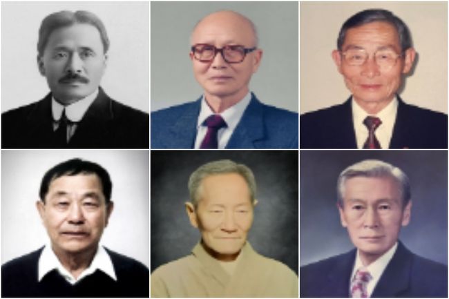 왼쪽 위에서 시계방향으로 문양목(미국 · 독립장), 김덕윤(캐나다 · 애국장), 김기주(브라질 · 애족장), 한응규(브라질 · 애족장), 임창모(미국 · 애족장), 김재은(미국 · 애족장) 지사 (사진=국가보훈부 제공)