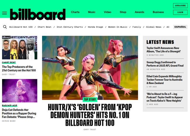 [일간환경연합 김경훈 기자] 넷플릭스 애니메이션 영화 `케이팝 데몬 헌터스`의 OST `골든`이 11일(현지시간) 미국 빌보드 메인 싱글 차트 `핫100` 1위에 올랐다.