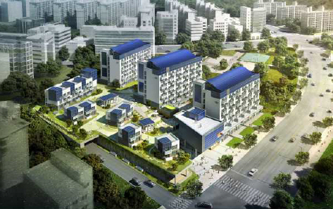 아파트와 연립주택, 단독주택 등 전용면적 39㎡~59㎡, 총 121세대 규모의 임대주택 단지에 냉방과 난방, 급탕, 조명, 환기 등 5대 에너지 제로화를 목표로 총 493억 원을 투입하였고, 이번 제로에너지 실증단지를 통해 2025년 제로에너지 주택 공급 목표*의 실현 가능성을 검증하고, 관련 분야 산업 육성과 기술 수준의 향상을 기대하고 있다.