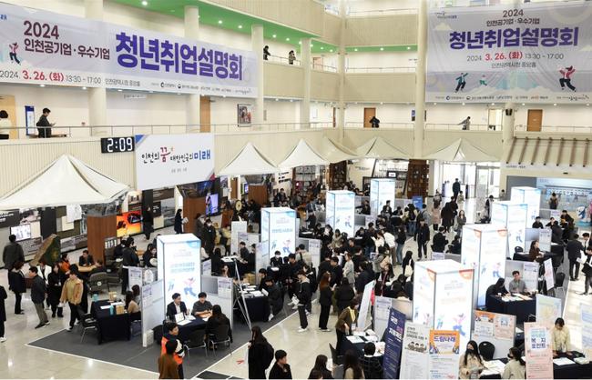 인천광역시(시장 유정복)는 오는 9월 23일 시청 중앙홀에서 `2025 인천 청년 취업설명회`를 개최한다. 사진은 2024년 청년 취업설명회 모습.