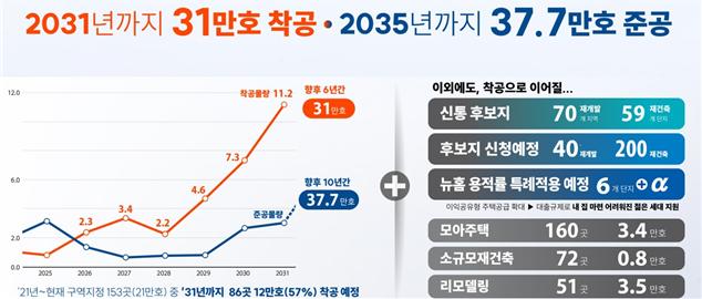 절차 간소화, 협의·검증 신속화, 이주촉진 등 3대 핵심 전략을 통해 정비사업 기간을 최대 6.5년 단축하고, 2031년까지 31만 호 착공을 목표로 한다.