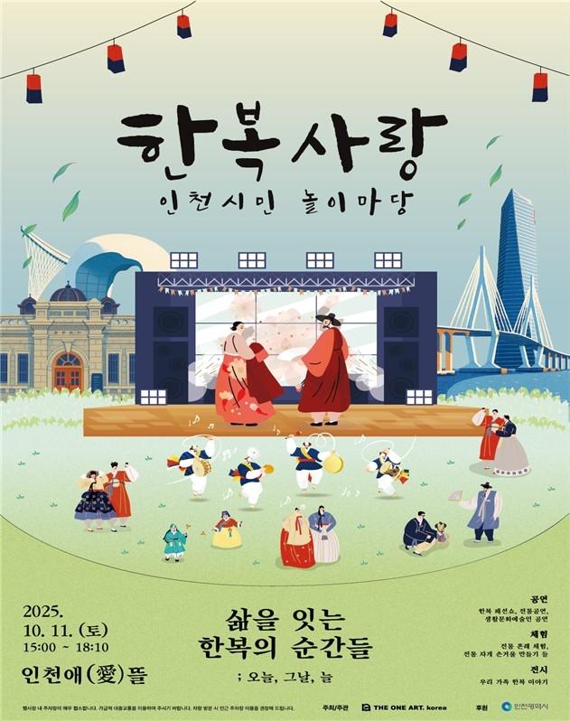[일간환경연합 김경훈 기자] 인천광역시(시장 유정복)는 10월 15일 인천시민의 날과 10월 21일 한복의 날을 맞아 오는 10월 11일 시청 인천애(愛)뜰에서 `2025년 한복사랑 인천시민 놀이마당`을 개최한다고 밝혔다.
