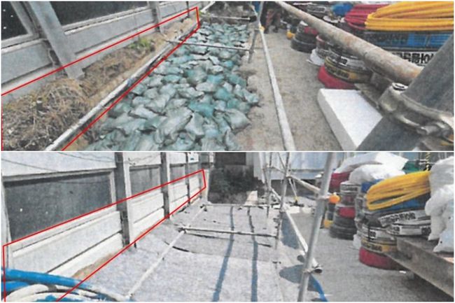 토사 노출 구간 조치 필요 (개선 전/후)