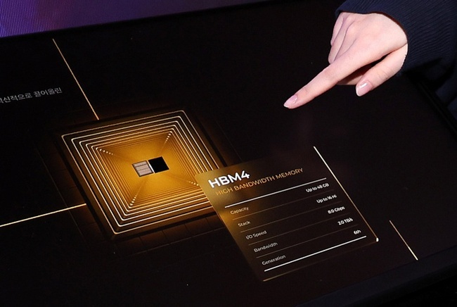 ▲ 제27회 반도체 대전(SEDEX 2025)을 찾은 관람객이 공개된 SK하이닉스 HBM4 실물을 살펴보고 있다. 2025.10.22 (ⓒ뉴스1)