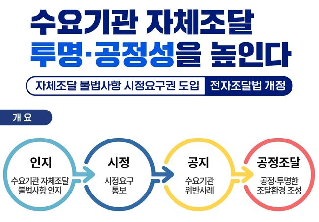 조달청에 따르면 「전자조달의 이용 및 촉진에 관한 법률」 개정안이 2025년 12월 23일부터 시행되면서, 조달청장은 수요기관이 수행하는 자체 전자조달 입찰 과정에서 불법 또는 법령 위반 사항이 발견될 경우 시정조치를 요구할 수 있는 법적 권한을 갖게 됐다.