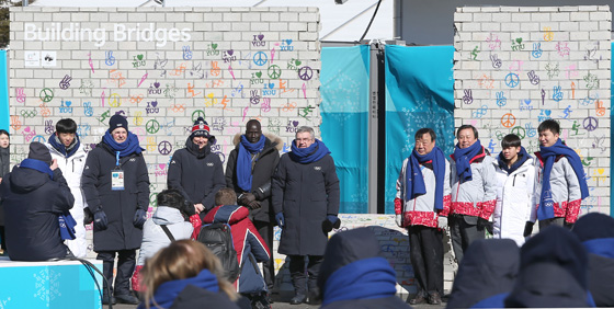 2018 평창동계올림픽 개막을 나흘 앞둔 5일 강원도 평창 올림픽 선수촌에서 휴전벽 제막행사가 열렸다. (사진 = 문화체육관광부) |