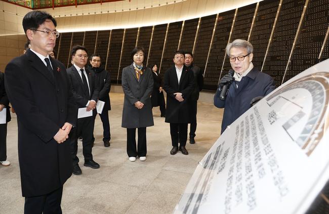 김민재 행정안전부 차관이 19일 오전 제주시 명림로 제주4 · 3평화공원 위패봉안실을 찾아 관계자로 부터 시설현황을 청취하고 있다.