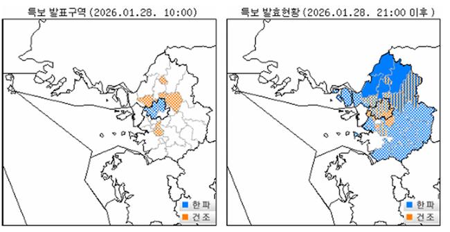 한파주의보 발표현황(`26. 1. 28. 오전 10시)