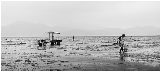 전남 무안?신안의 갯벌낙지 맨손어업은 남성은 ‘가래 삽*’을 사용하고 여성은맨손으로 갯벌에 서식하는 낙지를 채취하는 전통어법이다.