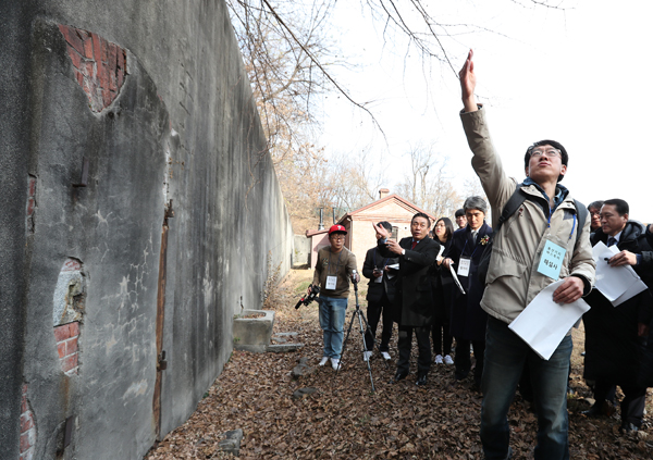지난해 11월 진행됐던 ‘용산기지 버스투어’ 모습. 용산공원추진단 관계자가 위수감옥 내부에서 당시 시신을 운반해 지나갔던 통로를 설명하고 있다.(사진=문화체육관광부 국민소통실) |