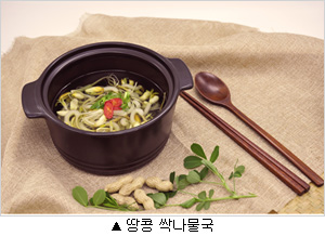 땅콩싹나물국땅콩 싹나물국= 먼저, 땅콩 싹나물을 먹기 좋은 크기로 다듬는다. 물에 넣고 7분에서 10분 끓인 뒤 소금으로 간을 한다.