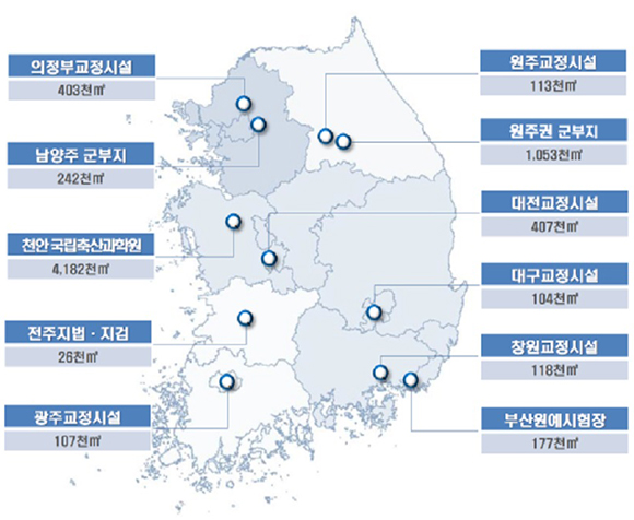 교도소와 군부지 등 공공시설 이전에 따라 확보되는 대규모 유휴 국유지를 활용하는 이번 사업은 지난 22일 국유재산정책심의위원회에서 여의도 면적의 2.4배(693만㎡)에 이르는 전국 11곳의 선도사업지를 선정한 바 있다.
