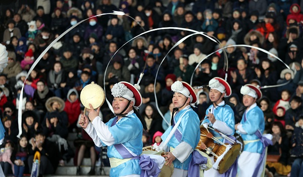 지난해 설 연휴를 맞아 서울 용산구 국립중앙박물관을 찾은 관람객들이 풍물 공연을 감상하고 있다.