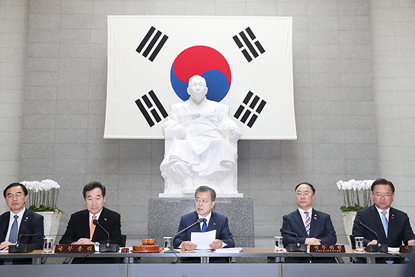 문재인 대통령이 26일 오전 서울 용산구 백범 기념관에서 열린 국무회의를 주재하고 있다.(사진=청와대) |