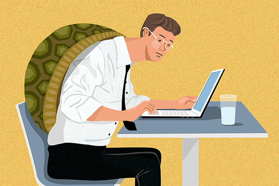 목뼈인 경추는 일반적으로 C자형의 곡선 형태다. 하지만 직장인들은 모니터를 아래로 내려다보는 경우가 많아 목뼈 모양이 일자나 혹은 역C자가 변하게 된다. 보통 목이 2㎝에서 2.5㎝ 이상 앞으로 쏠리는 경우가 많아 마치 거북이의 목처럼 보여서 ‘거북목증후군’이라고 한다.