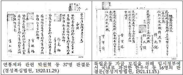 이러한 임시정부의 항일투쟁에 참여한 인물들이 일제의 감시망에 걸려 검거되고 재판을 받은 판결문은 100주년의 의미를 되새기는 데 도움이 될 것으로 기대된다.
