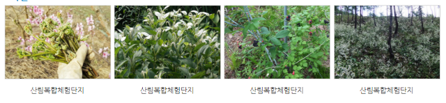 산채·약초 숲은 울진군 북면 두천리 일원 국유림 10ha에 음나무, 곰취, 당귀, 산양삼 등 총 7종으로 조성되었으며, 향후 지역주민에게 양여 및 마을기업 육성 등을 통해 소득증대와 일자리 창출에 기여할 계획이다.