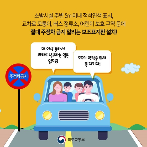 4대 주정차 절대 금지구역은 ① 소방시설 주변 5m 이내, ② 교차로 모퉁이 5m 이내, ③ 버스 정류소 10m 이내, ④ 횡단보도 위이며 안전신문고 앱으로 위반차량 사진 2장을 1분 간격으로 촬영하여 신고하면 공무원의 현장단속 없이도 과태료가 즉시 부과된다.