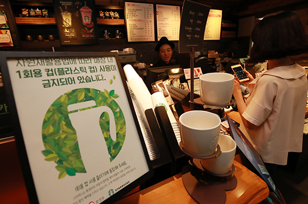 같은 기간 총매장 수가 9138곳에서 1만 360곳으로 1222곳 늘었는데도 1회용 컵 사용량은 2408만개 줄었다.