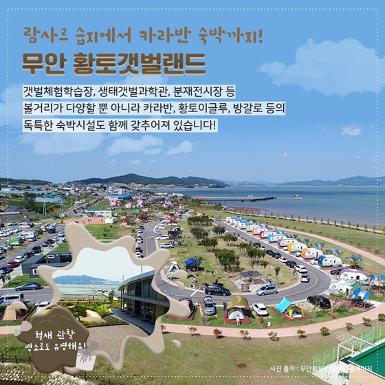 신나는 썰매부터 카라반 숙박까지 모두 가능한 갯벌의 매력에 퐁당 빠져볼까요?
