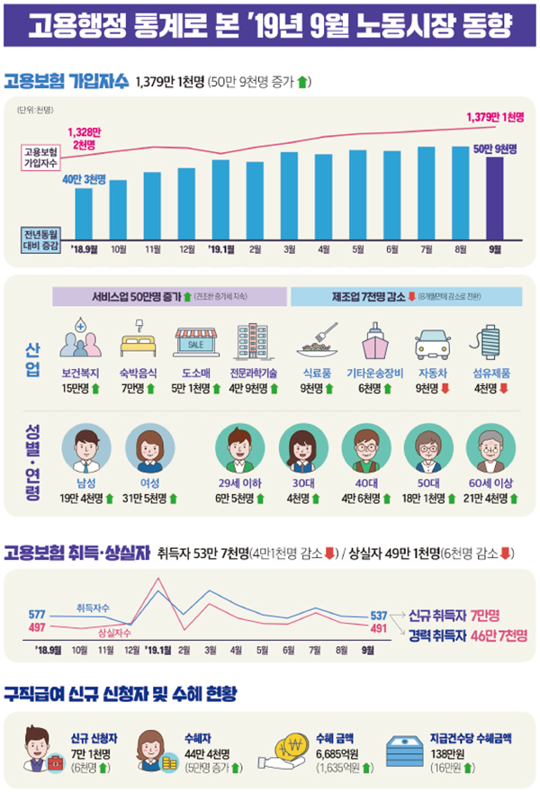 고용행정 통계로 본 2019년 9월 노동시장 동향. |