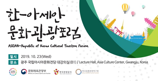 문화체육관광부는 한국관광공사, 한국문화관광연구원과 함께 오는 23일 광주 국립아시아문화전당 대강의실에서 ‘2019 한-아세안 문화관광포럼’을 개최한다고 17일 밝혔다.