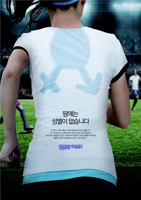 디자인 부문에서 대상을 받은 작품은 선수들이 흘린 땀과 노력은 차별을 받지 말아야 한다는 의미에서 땀에는 성별이 없다는 메시지를 픽토그램으로 표현했다.