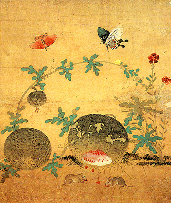 특히 신사임당(申師任堂)의 ‘수박과 쥐그림’에는 수박의 빨간 속살 앞에서 씨앗을 먹고 있는 쥐 한 쌍이 사실적으로 그려져 있다. 여기서 수박은 씨가 많으므로 쥐와 함께 다산(多産)과 풍요를 의미하고, 한 쌍의 쥐는 부부 사랑도 상징한다.