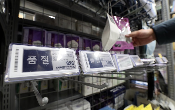 신종코로나에 대한 시민들의 우려가 커지면서 29일 대구 시내 한 대형마트 마스크 진열대에 일부 제품이 동나 진열대가 비어있다.(사진=(c) 연합뉴스)또 담합 등을 통한 가격 인상 등 불공정 거래 행위에 대한 감시를 강화하고, 위반시 공정거래법에 따라 엄정 조치하기로 했다. 위반시 매출액의 10%를 초과하지 않는 범위 내에서 과징금을 부과하고 3년 이하의 징역 또는 2억원 이하의 벌금이 부과된다.