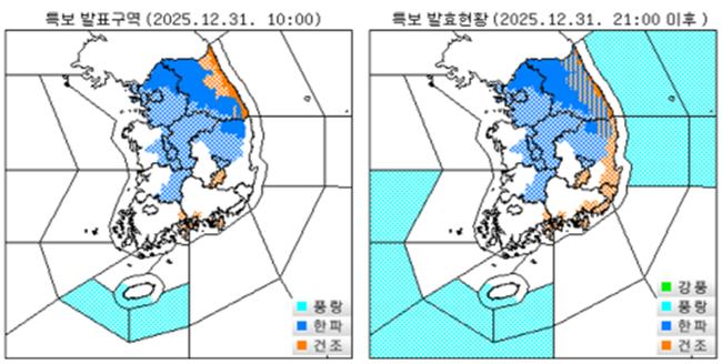 - 오세훈 서울시장은 31일 서울 전역에 한파주의보가 발효되고 새해 첫날 아침 최저기온이 영하 12도 이하로 내려갈 것으로 예보되자 취약계층 보호와 시민 안전관리를 강화하라고 지시했으며, 서울시는 25개 자치구와 함께 한파 종합지원상황실을 24시간 가동하기로 했다.서울시는 31일(수) 21시 서울 전역에 한파주의보가 발효됨에 따라 시와 2...