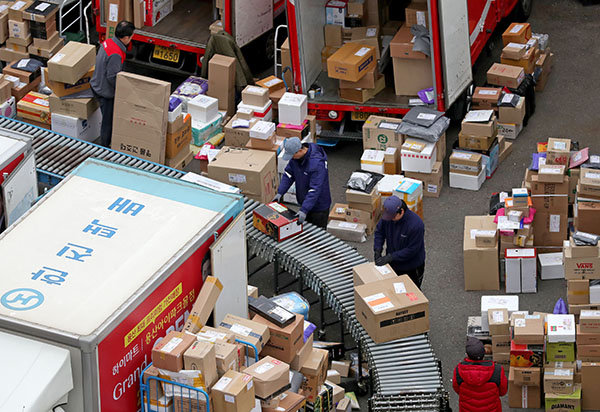 코로나19 확산에 따라 비대면 소비가 급증하는 가운데 서울 시내의 한 택배 물류센터에 택배가 수북이 쌓여 있다.(사진=(c) 연합뉴스)이는 최근 코로나19로 인한 온라인 주문 등 비대면 소비 확대로 택배 물동량이 급증하면서 과중한 물량으로 어려움을 겪고 있는 택배기사를 보호하기 위한 조치다.