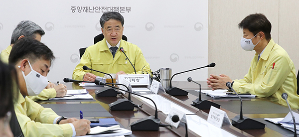 박능후 중앙재난안전대책본부 1차장(보건복지부 장관, 가운데)이 18일 오전 세종시 정부세종청사에서 열린 코로나19 대응 중앙재난안전대책본부 회의를 주재하며 발언하고 있다. (사진=(c) 연합뉴스)박 1차장은 “이번 집단감염 사례에 대응하는 과정에서 생활 속에서 방역수칙을 철저히 실천하는 것이 추가적인 전파를 차단하는데 효과적임을 다시 한 번 확인할 수 있었다”고 언급했다.